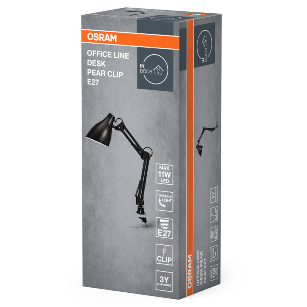 Állítható íróasztali lámpa, asztalra szerelhető, 40 cm, fekete - Osram Office Line Desk Pear Clip, 1xE27 foglalattal, 1,5 méteres kábellel, 220-240 V