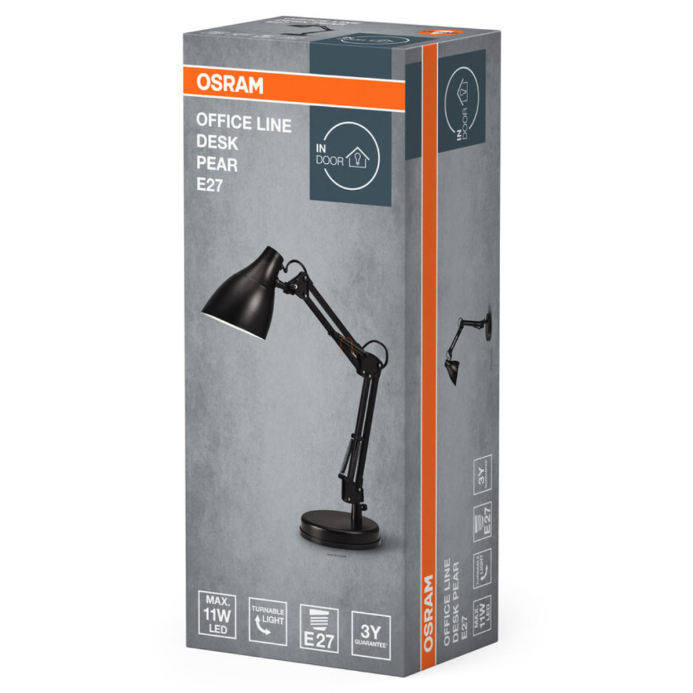 Állítható íróasztali lámpa, 40 cm, fekete - Osram Office Line Desk Pear, 1xE27 foglalattal, 1,5 méteres kábellel, 220-240 V
