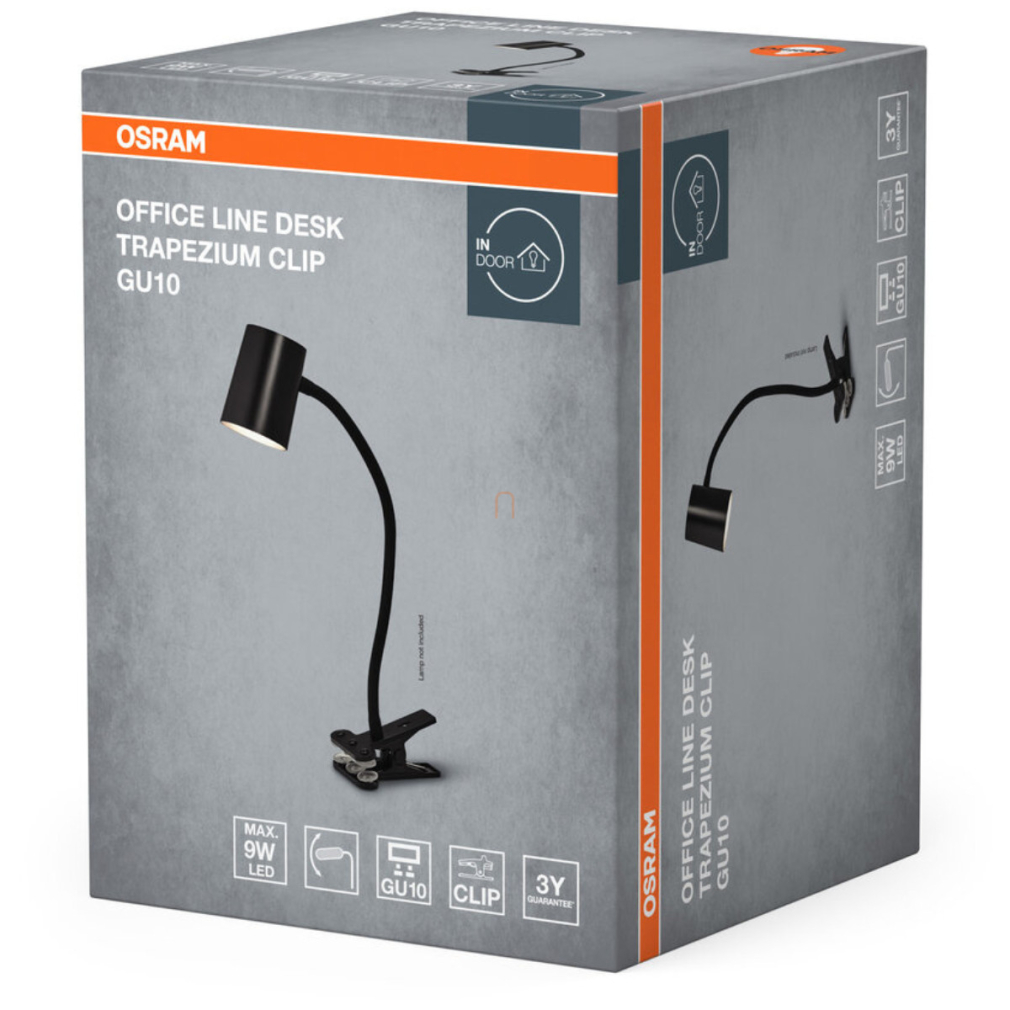 Csíptetős asztali lámpa, 34 cm, fekete - Osram Office Line Desk Trapezium, 1xGU10 foglalattal, 1,6 méteres kábellel, 220-240 V