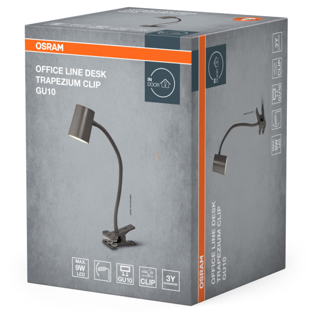 Csíptetős asztali lámpa, 34 cm, szürke - Osram Office Line Desk Trapezium, 1xGU10 foglalattal, 1,6 méteres kábellel, 220-240 V