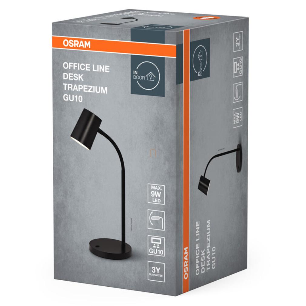 Íróasztali lámpa, 36,5 cm, fekete - Osram Office Line Desk Trapezium, 1xGU10 foglalattal, 1,6 méteres kábellel, 220-240 V