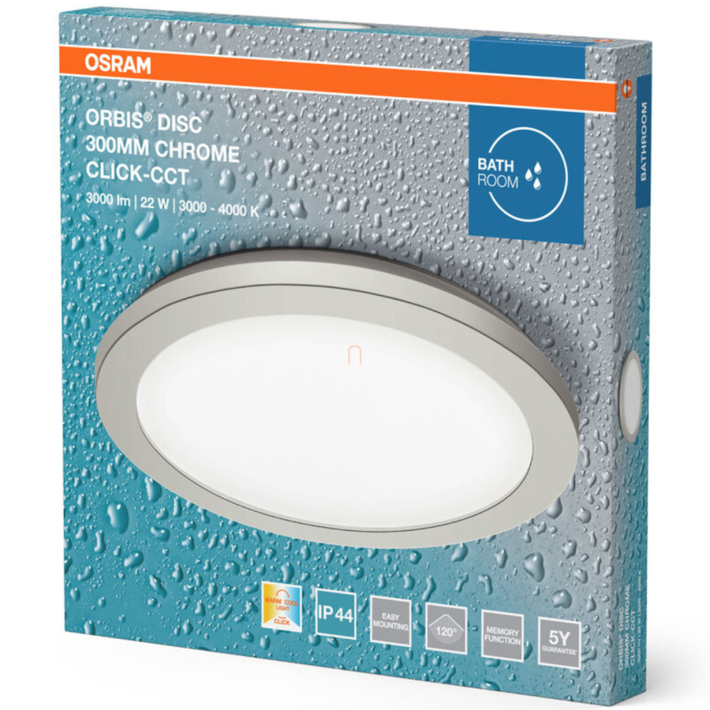 Osram Orbis Disc szabályozható fürdőszobai mennyezeti LED lámpa króm színben, 30 cm