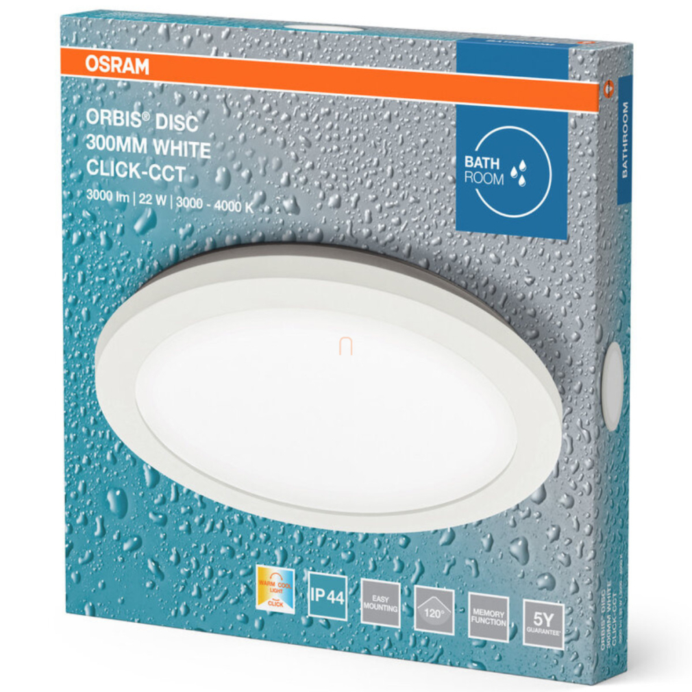 Osram Orbis Disc szabályozható fürdőszobai mennyezeti LED lámpa fehér színben, 30 cm