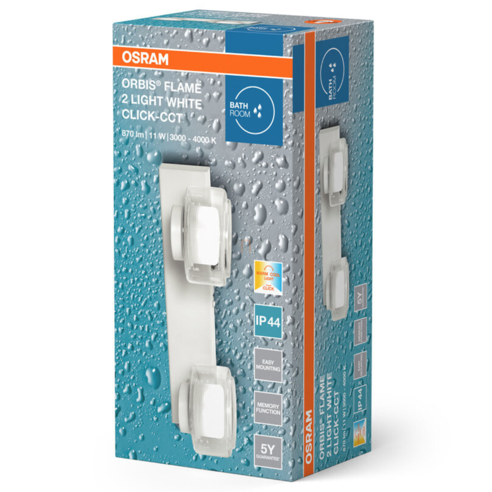 Osram Orbis Flame szabályozható fürdőszobai fali LED lámpa 2 foglalattal fehér színben