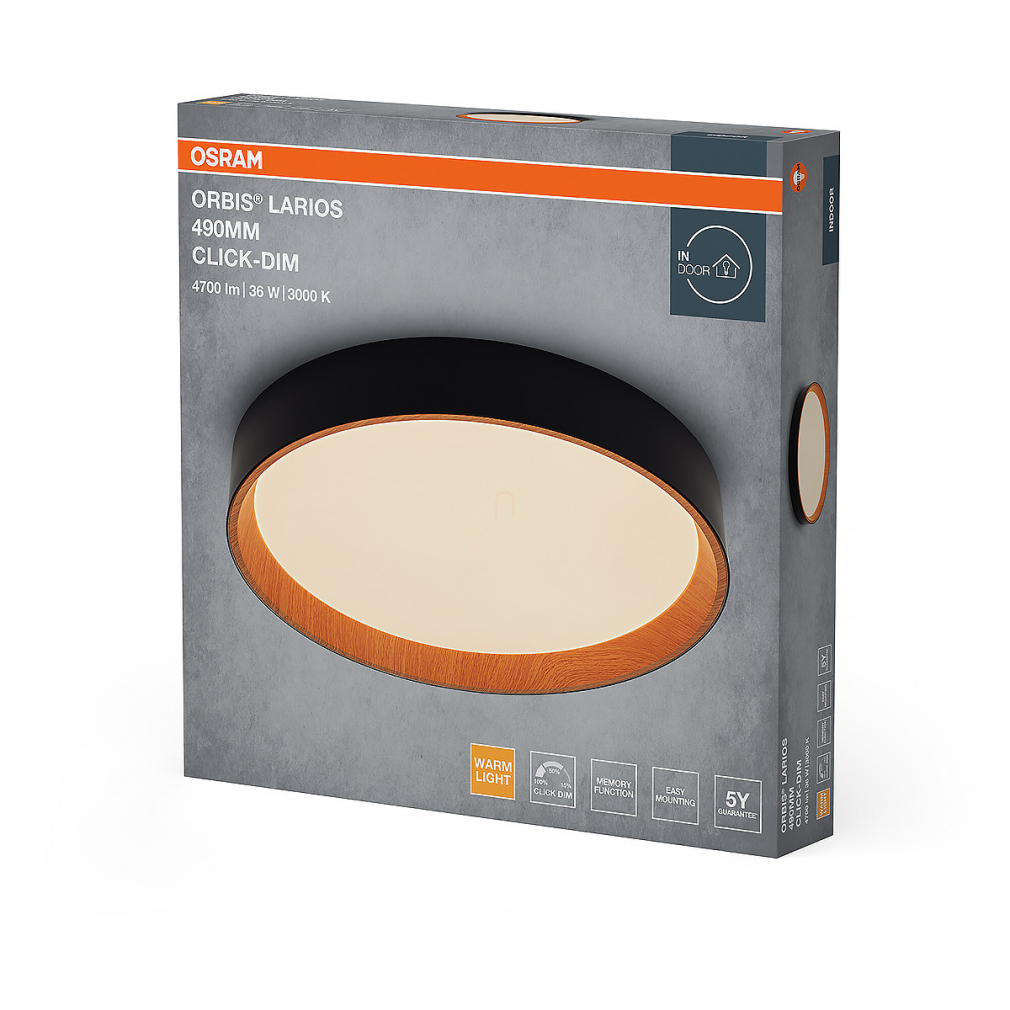 Osram Orbis Larios szabályozható mennyezeti LED lámpa, fa hatású, 36 W, 2000 lm, 3000 K, állítható fényerősség 3 fokozatban, fekete-barna