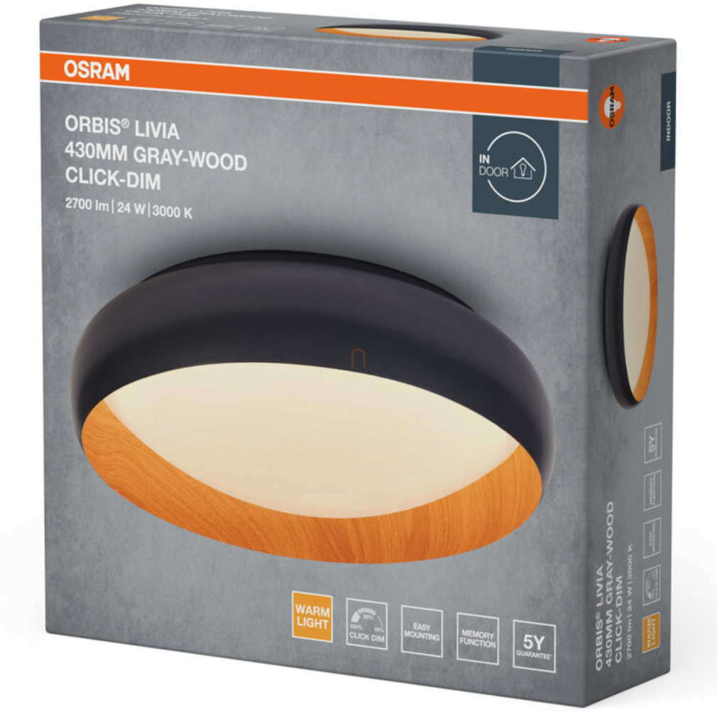 Osram Orbis Livia mennyezeti LED lámpa, fa hatású-sötét szürke színben, 43 cm