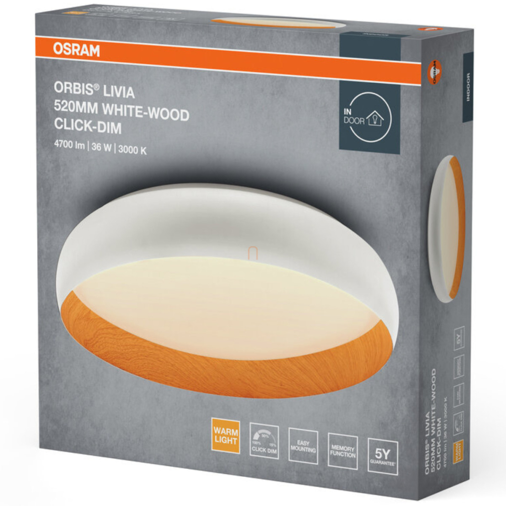 Osram Orbis Livia mennyezeti LED lámpa, fa hatású-fehér színben, 52 cm