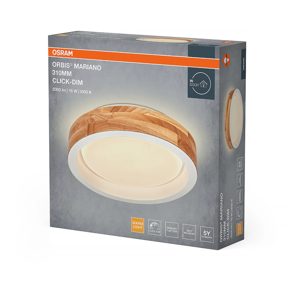 Osram Orbis Mariano szabályozható mennyezeti LED lámpa, fa hatású, 16 W, 1000 lm, 3000 K, állítható fényerősség 3 fokozatban