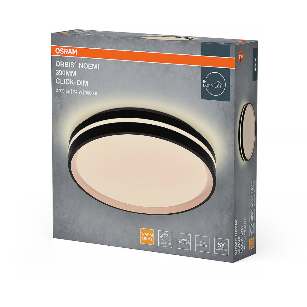 Osram Orbis Noemi szabályozható mennyezeti LED lámpa, 24 W, 1450 lm, 3000 K, állítható fényerősség 3 fokozatban, fekete