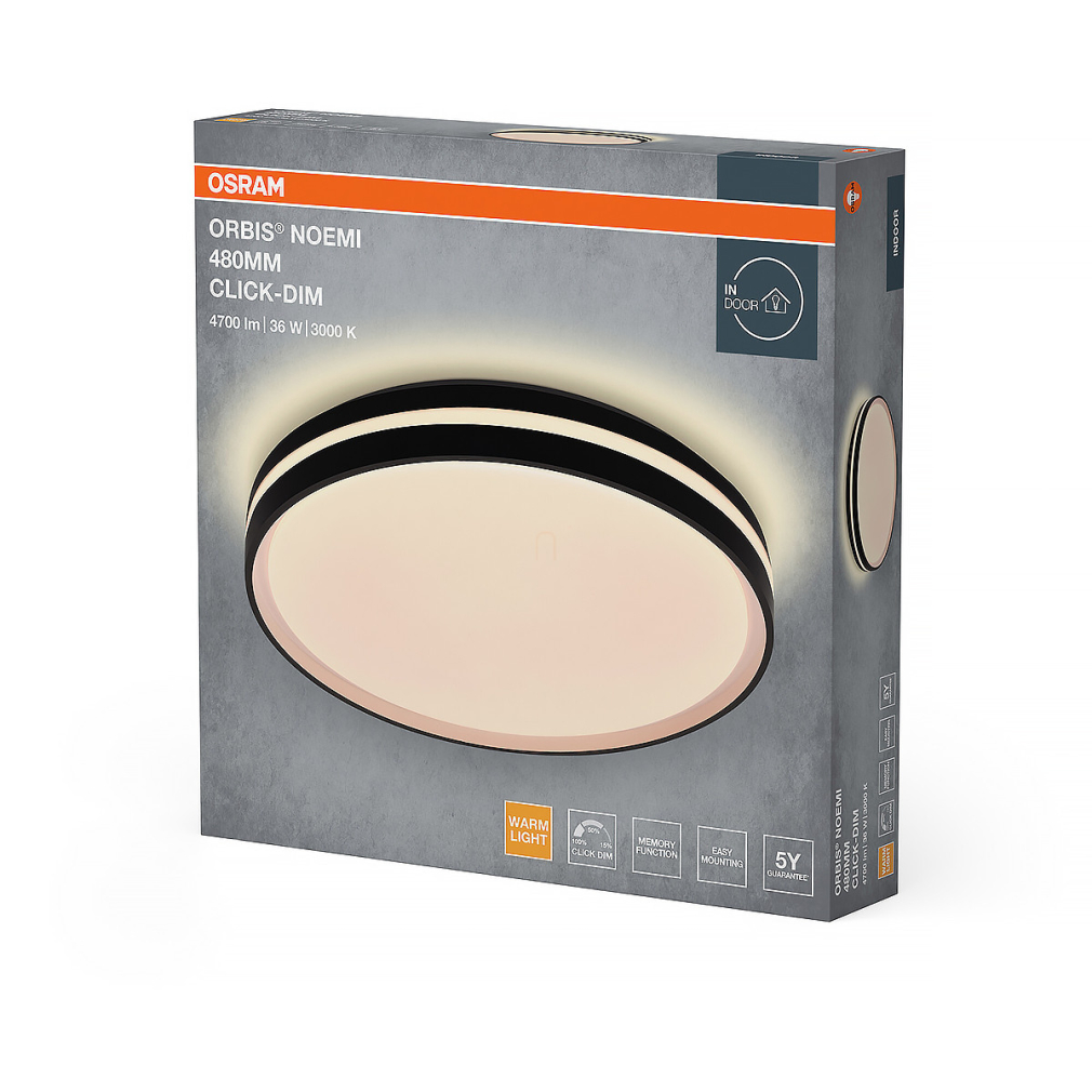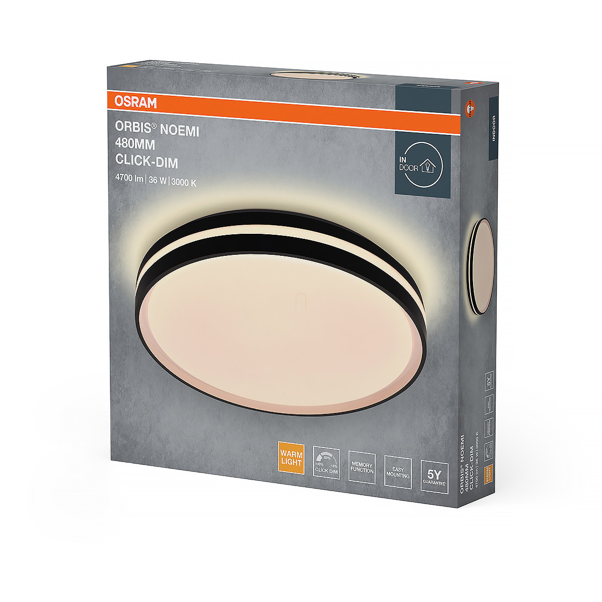 Osram Orbis Noemi szabályozható mennyezeti LED lámpa, 36 W, 2000 lm, 3000 K, állítható fényerősség 3 fokozatban, fekete
