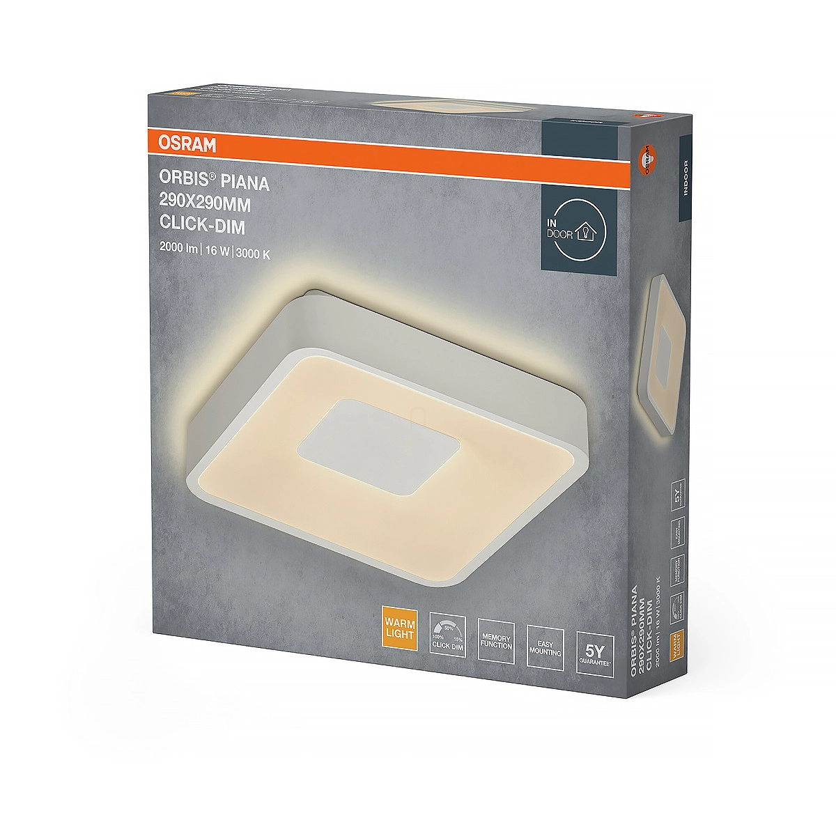 Osram Orbis Piana szabályozható mennyezeti LED lámpa, 16 W, 1000 lm, 3000 K, állítható fényerősség 3 fokozatban, fehér