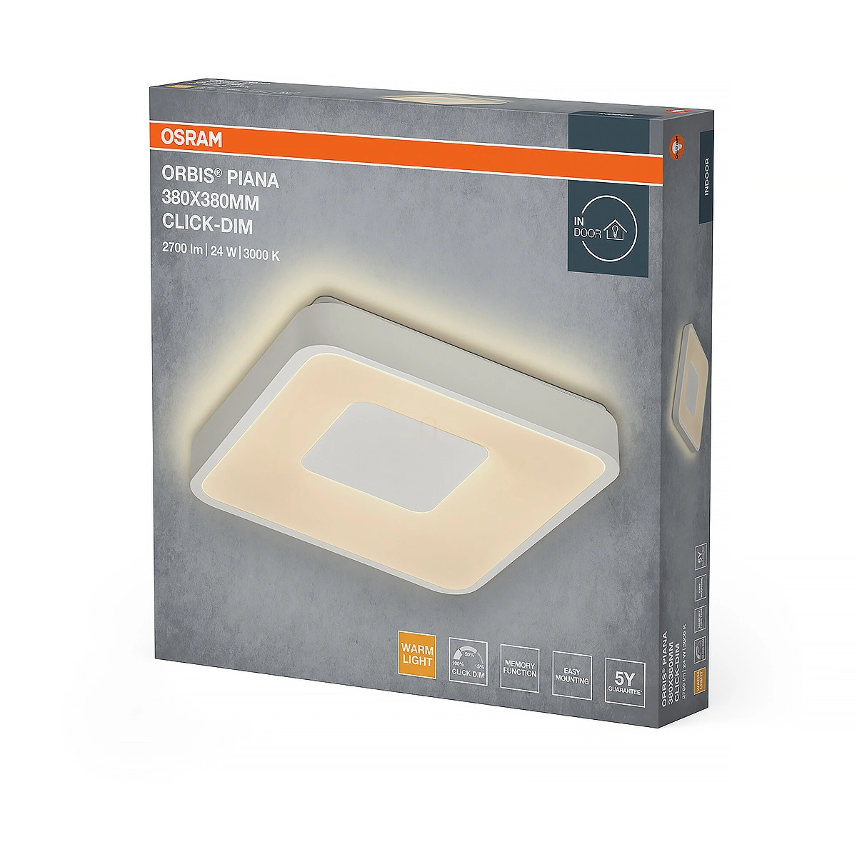 Osram Orbis Piana szabályozható mennyezeti LED lámpa, 24 W, 1450 lm, 3000 K, állítható fényerősség 3 fokozatban, fehér