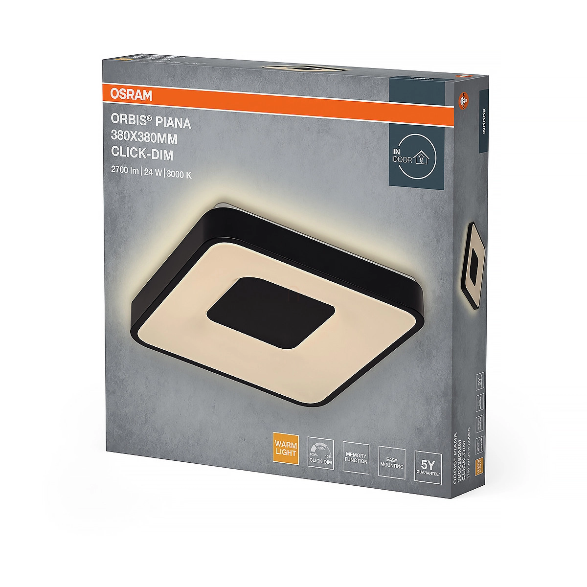 Osram Orbis Piana szabályozható mennyezeti LED lámpa, 24 W, 1450 lm, 3000 K, állítható fényerősség 3 fokozatban, fekete