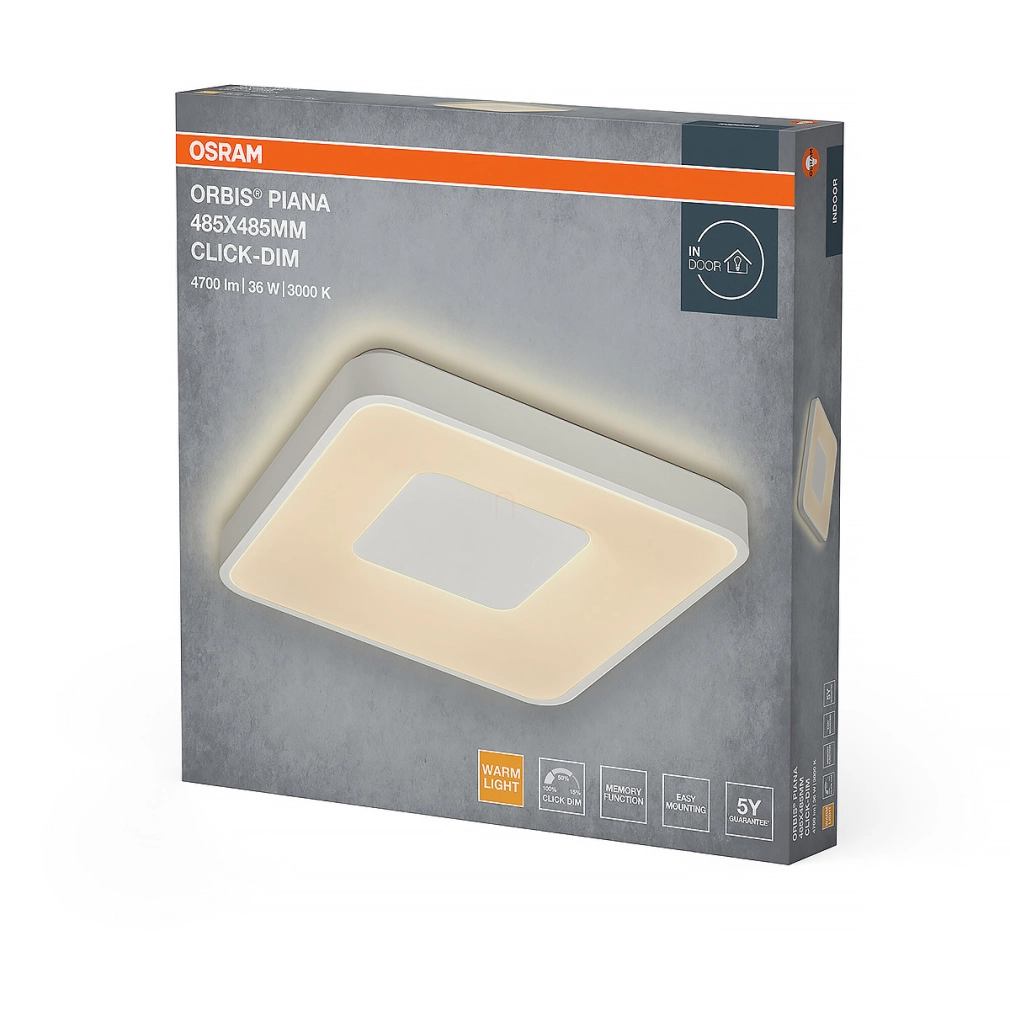 Osram Orbis Piana szabályozható mennyezeti LED lámpa, 36 W, 2000 lm, 3000 K, állítható fényerősség 3 fokozatban, fehér