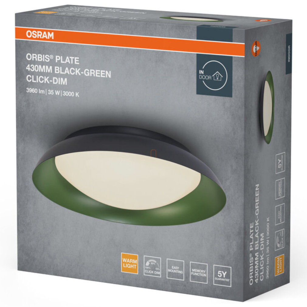 Osram Orbis Plate mennyezeti LED lámpa, fekete-zöld színben, 43 cm