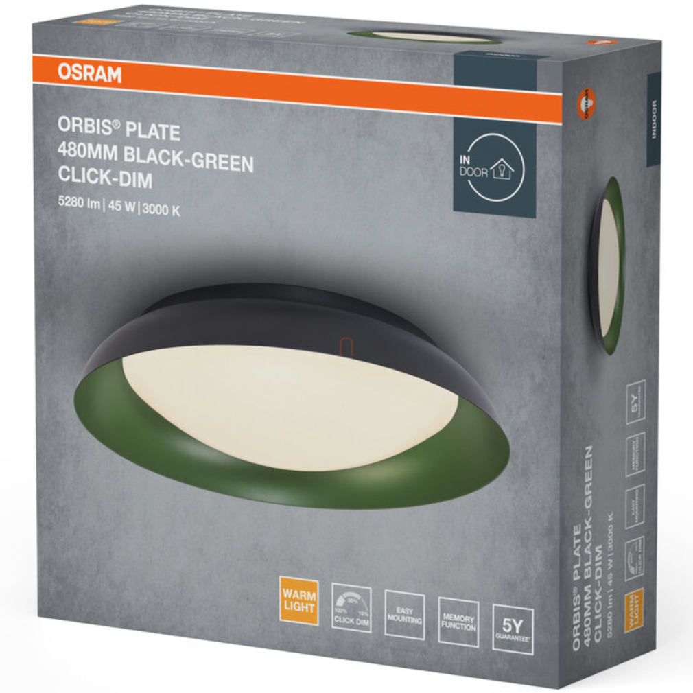 Osram Orbis Plate mennyezeti LED lámpa, fekete-zöld színben, 48 cm