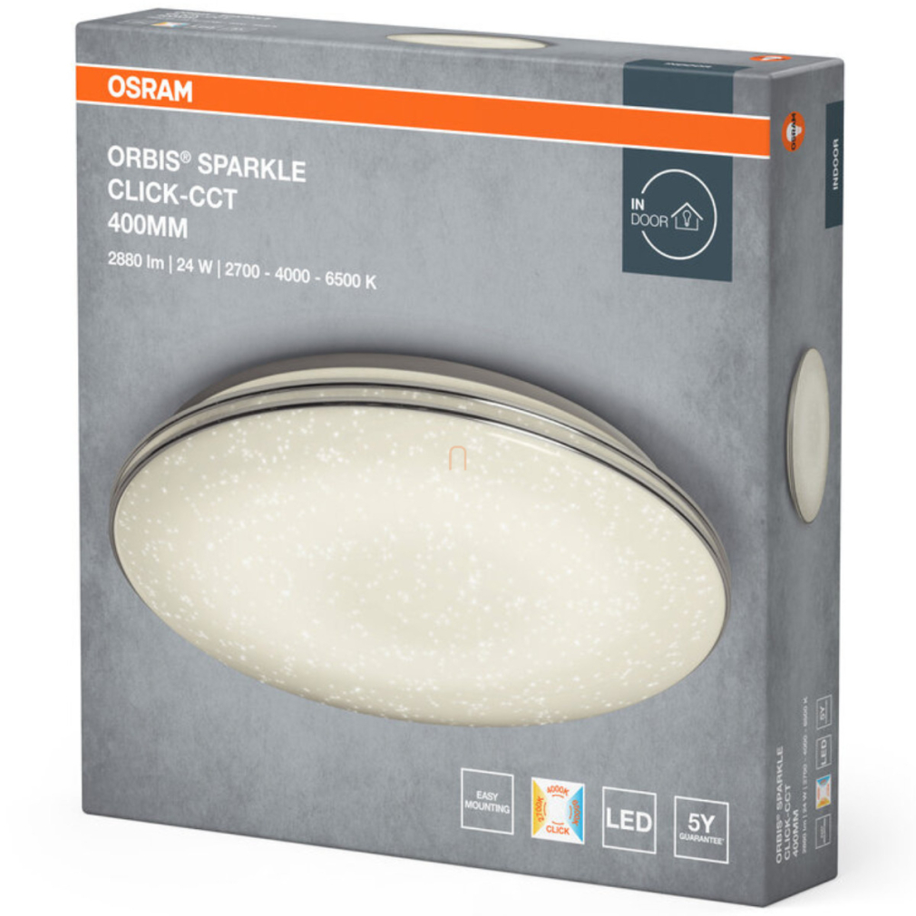 Osram kapcsolóval szabályozható mennyezeti LED lámpa csillám búrával, hideg/melegfehér, 24 W (Orbis Sparkle)