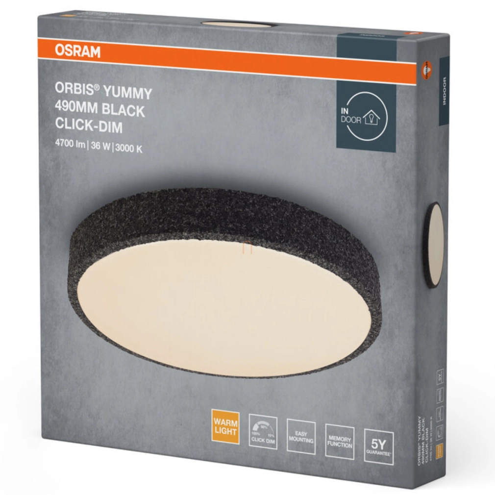 Osram Orbis Yummy fali kapcsolóval szabályozható mennyezeti LED lámpa, fekete színben, 49 cm