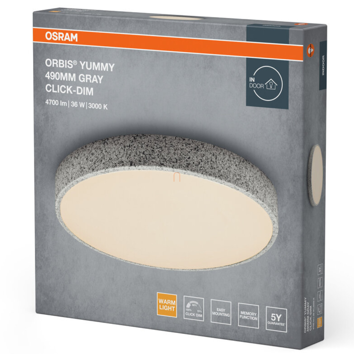 Osram Orbis Yummy fali kapcsolóval szabályozható mennyezeti LED lámpa szürke színben, 49 cm