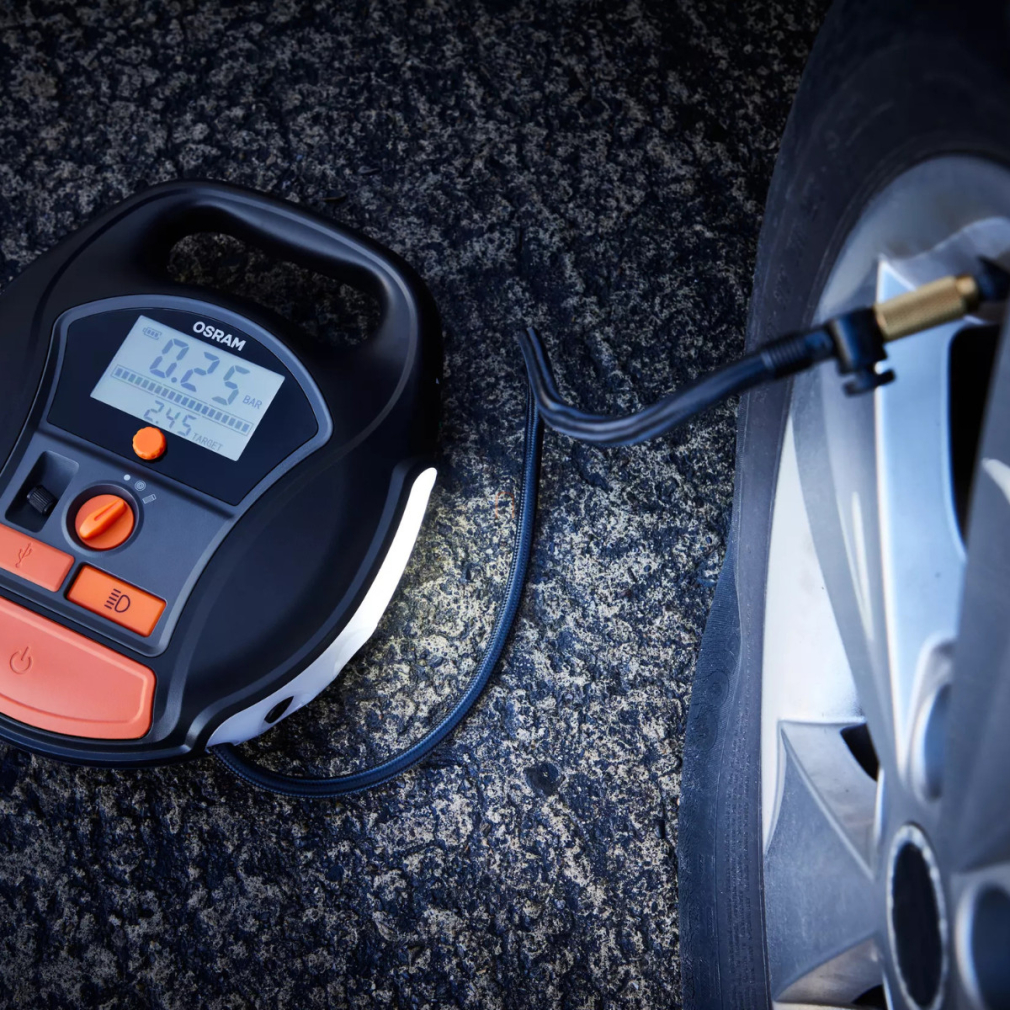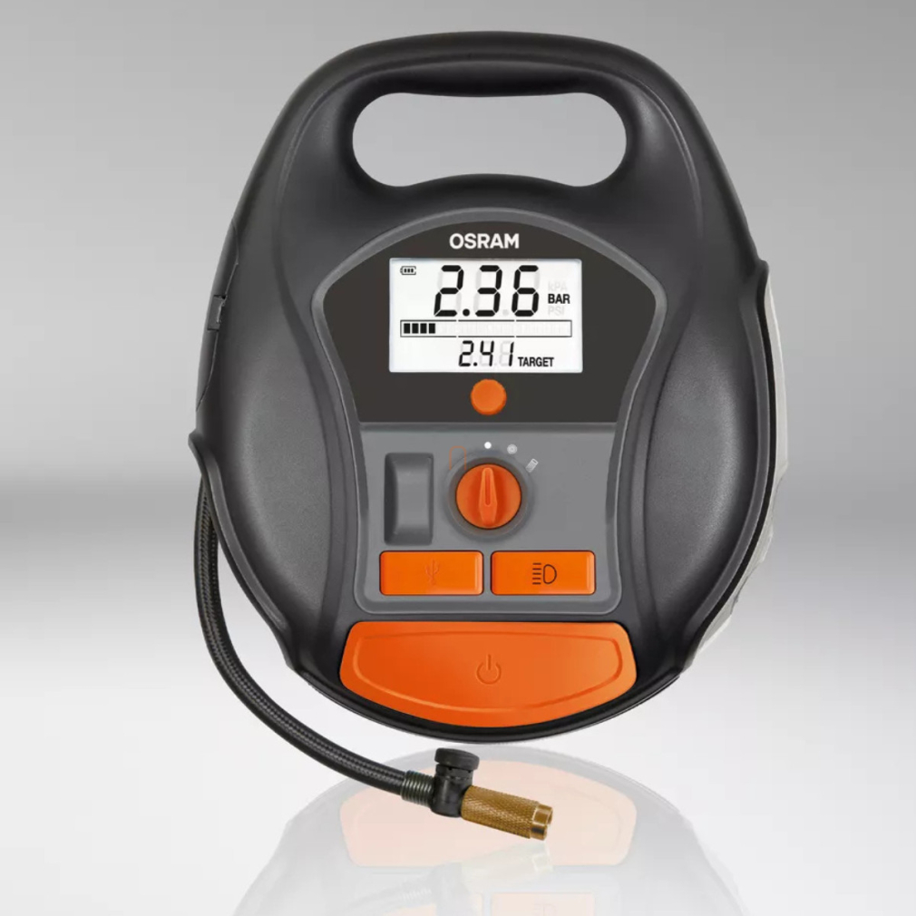Az Osram Tyreinflate 6000 a digitális gumiabroncs-felfújók új generációját képviseli, amelyet kifejezetten azok számára terveztek, akik nem elégszenek meg az alapfunkciókkal, hanem komplex, sokoldalú megoldást keresnek a jármű- és otthoni használatra egyaránt. Ez a modern, vezeték nélküli, újratölthető eszköz lítium-ion akkumulátorral rendelkezik, amely lehetővé teszi, hogy ne csak autókhoz, motorkerékpárokhoz és kerékpárokhoz, hanem felfújható matracokhoz, labdákhoz és más szabadidős eszközökhöz is hatékonyan használd. A Tyreinflate 6000 egyik legkiemelkedőbb jellemzője a gyorsasága: egy 13 hüvelykes abroncsot mindössze 2 perc alatt képes lapos állapotból 2,4 bar nyomásra felfújni. A beépített automatikus leállítás funkció segítségével a kompresszor pontosan abban a pillanatban áll le, amikor az előre beállított nyomásértéket eléri, így nem kell tartanod a túlfújástól vagy alulfújástól. A felesleges levegő leengedéséhez külön leeresztőszelepet is beépítettek. A háttérvilágítással rendelkező nagy méretű, 76 x 46 mm-es digitális kijelző világosan mutatja az aktuális nyomásértékeket, amelyeket PSI, kPa vagy bar egységekben is megjeleníthetsz, így mindig könnyen eligazodsz, még sötétben is. Az erős LED-lámpa ráadásul megvilágítja a szelepet és a munkaterületet, ami különösen hasznos éjszakai vagy kedvezőtlen fényviszonyok közötti használatkor. A készülék 5,5 bar maximális nyomásra képes, így a legtöbb felhasználási területet lefedi. A 43-45 liter/perces légszállítási teljesítmény pedig biztosítja, hogy a nagyobb térfogatú eszközöket is gyorsan és hatékonyan fújd fel. A Tyreinflate 6000 powerbank funkciója lehetővé teszi, hogy a beépített USB-csatlakozón keresztül más eszközöket, például telefonodat is töltsd, így még nagyobb szabadságot és kényelmet kínál. A csomag tartalmaz egy 10 darabos adapterkészletet, amely minden elképzelhető alkalmazáshoz megfelelő csatlakozást biztosít, továbbá 4 darab tartalék szelepsapkát, egy tartalék biztosítékot, valamint egy pár kesztyűt is. A 70 cm-es levegőtömlő és a 3,5 méteres tápkábel lehetővé teszi, hogy a jármű bármely pontját kényelmesen elérd, legyen az akár egy nagyobb lakóautó vagy kisteherautó. A 180 wattos névleges teljesítmény és a 12 voltos hálózati csatlakozó biztosítja, hogy a készülék mindig erőteljesen és megbízhatóan működjön. A teljes feltöltés körülbelül 10 órát vesz igénybe, de a nagy kapacitású akkunak köszönhetően akár több abroncsot is képes egymás után felfújni. Ha tehát egy sokoldalú, erős és jól felszerelt kompresszorra vágysz, amely nem csak az abroncsfújásban segít, hanem szinte minden felfújható eszközre használható, az Osram Tyreinflate 6000 az egyik legjobb választás. Praktikus tartozékaival, felhasználóbarát kialakításával és nagy teljesítményével biztosítja, hogy mindig felkészülten indulj útnak, akár hétköznapokról, akár hosszabb kirándulásokról van szó.