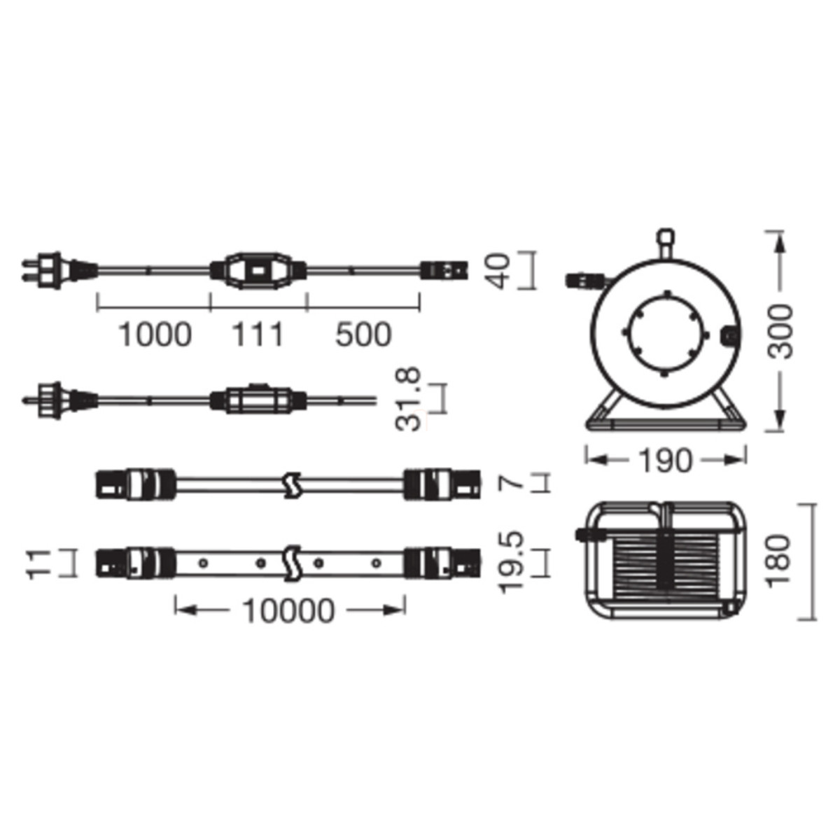 Az Osram Outdoor Flex 10M 840 IP65 számos praktikus tulajdonsággal rendelkezik, amelyek megkönnyítik a használatát. Az 1,5 méteres kábellel és csatlakozóval ellátott LED szalag azonnal használatba vehető, a kábeldobra tekerhető kialakítás pedig egyszerű tárolást biztosít. A termék akár 50 méterig bővíthető, maximum 450 W összteljesítményig. A felületre szerelhető kialakítás és a mellékelt rögzítőelemek gyors és egyszerű telepítést tesznek lehetővé. Az IP44-es védettségű tápegység megfelelő védelmet biztosít a nedves környezetben való használathoz is.