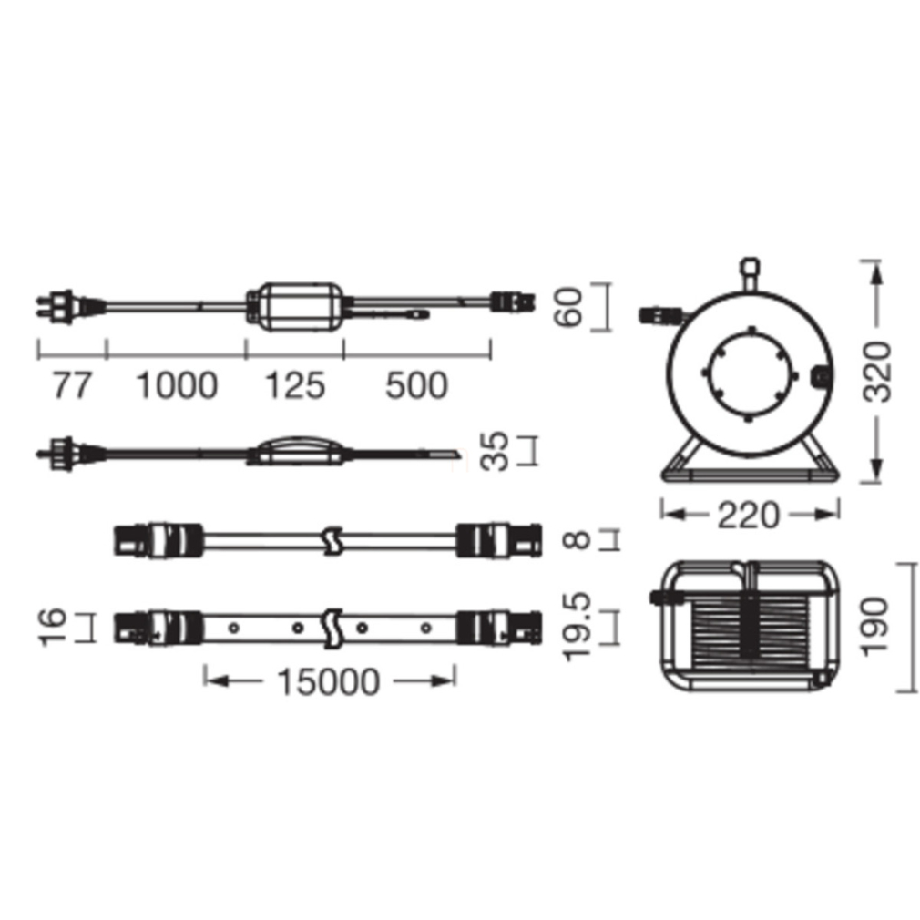 Az Osram Outdoor Flex LED-szalag különlegessége, hogy akár 50 méterig bővíthető, maximum 450 W összteljesítményig, így nagyobb területek megvilágítására is alkalmas. A termék fehér színű, PVC anyagú burkolattal rendelkezik, méretei pedig 15000 mm hosszúság, 16 mm szélesség és 8 mm magasság. A LED-szalag felületre szerelhető és dimmelési lehetőséggel is rendelkezik a távirányító által. Az eszköz F típusú csatlakozóval van felszerelve, a praktikus használatot pedig 1,5 méteres kábel és csatlakozó, valamint a könnyű tárolást biztosító kábeldob segíti. A csomagban található távirányító CR2025 típusú elemmel működik, valamint szerelési kiegészítők is mellékelve vannak a termékhez.