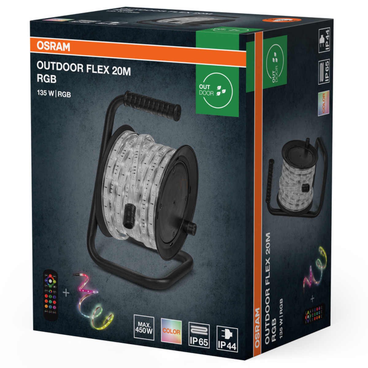 Az Osram Outdoor Flex 20M RGB IP65 Remote Control egy robusztus, sokoldalú LED szalag, amely tökéletes megoldást kínál mind beltéri, mind kültéri világításhoz. Ez a 20 méteres RGB LED szalag IP65-ös védelemmel rendelkezik, így kiválóan ellenáll a por és nedvesség káros hatásainak, ideálissá téve kertekbe, teraszokra és egyéb kültéri területekre.