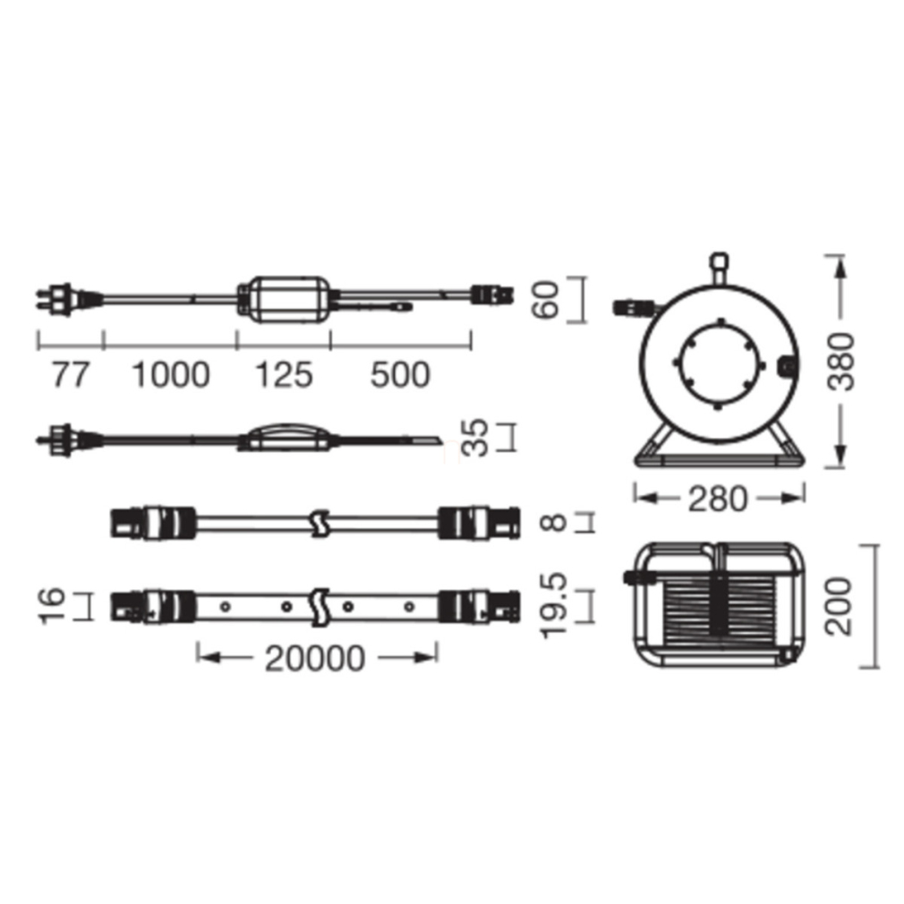 A LED szalag fizikai jellemzőit tekintve 20000 mm hosszú, 16 mm széles és 8 mm magas, fehér színű PVC (polivinil-klorid) anyagból készült. A termék tartalmaz egy 1,5 méteres kábelt és F típusú csatlakozódugót, valamint praktikus kábeldob is tartozék a könnyű tároláshoz. A csomag része a távirányító (CR2025 elemmel) és a rögzítéshez szükséges szerelési kiegészítők is. Az Outdoor Flex LED szalag különleges tulajdonsága a 30000 órás élettartam (L70/B50 paraméterrel 25°C-on) és a 10000 kapcsolási ciklus. Telepítése egyszerű, felületre szerelhető kialakítással rendelkezik, míg a tápegység IP44-es védettségű, maga a LED szalag pedig IP65 védettséggel büszkélkedhet. Ez a LED szalag II-es érintésvédelmi osztályba tartozik, teljesítménytényezője pedig kiváló, > 0,90.