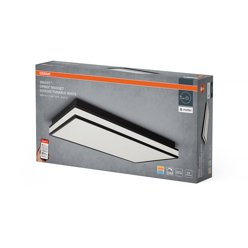 Osram Smart + Matter Magnet szabályozható mennyezeti LED lámpa mágneses rögzítéssel, 42 W, 2300 lm, 3000-6500 K, változtatható fényerősség és színhőmérséklet