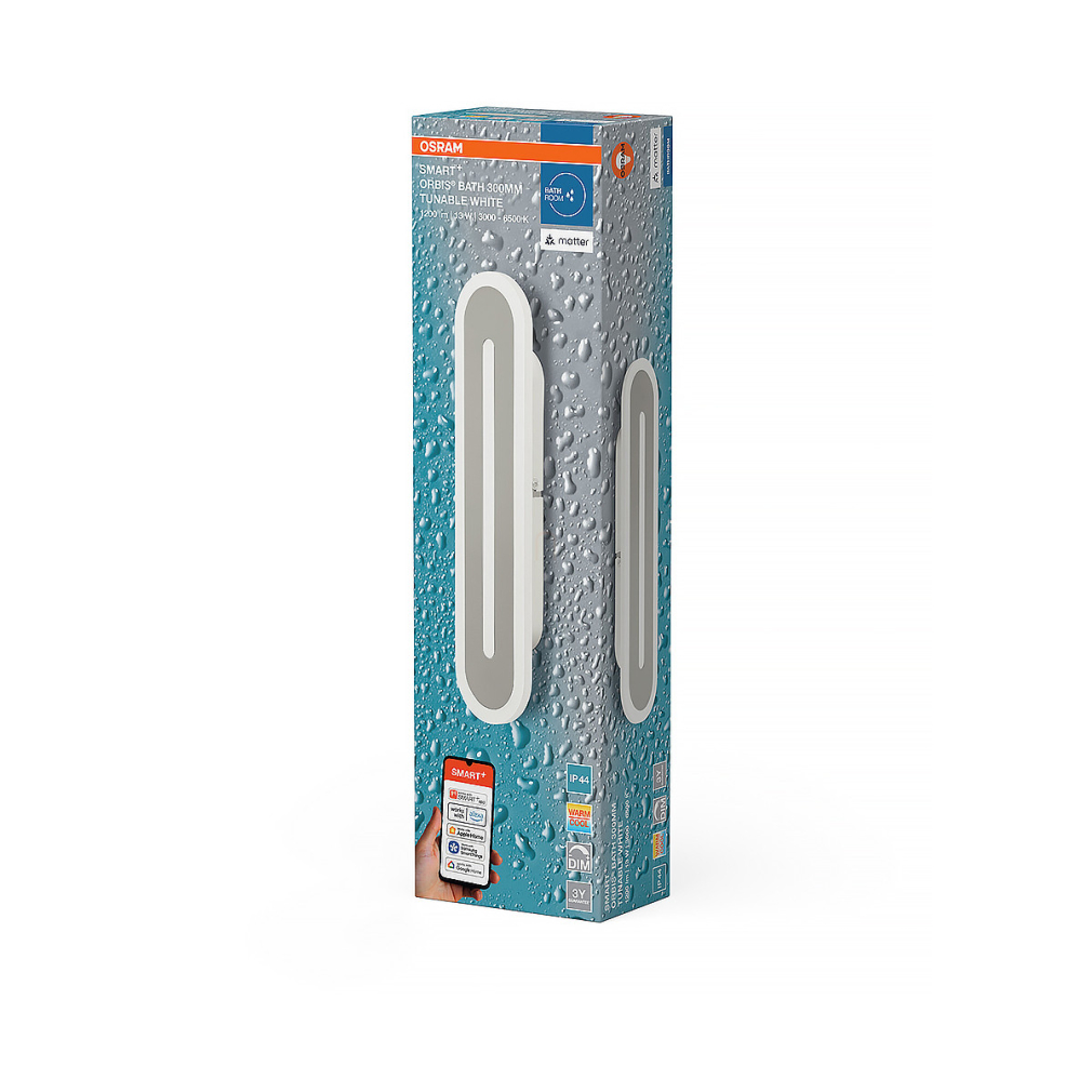 Osram Smart + Matter Orbis Wall Bath szabályozható fürdőszobai fali LED lámpa, 13 W, 600 lm, 3000-6500 K, dimmelhető