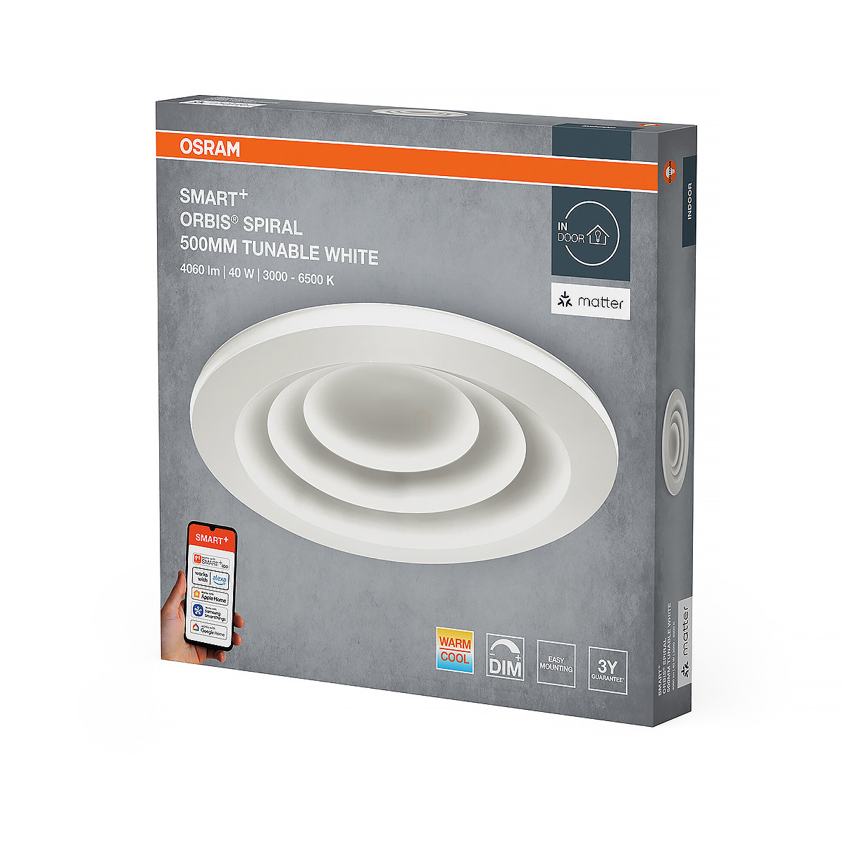Osram Smart + Matter Spiral szabályozható mennyezeti LED lámpa, 40 W, 1900 lm, 3000-6500 K, változtatható fényerősség és színhőmérséklet