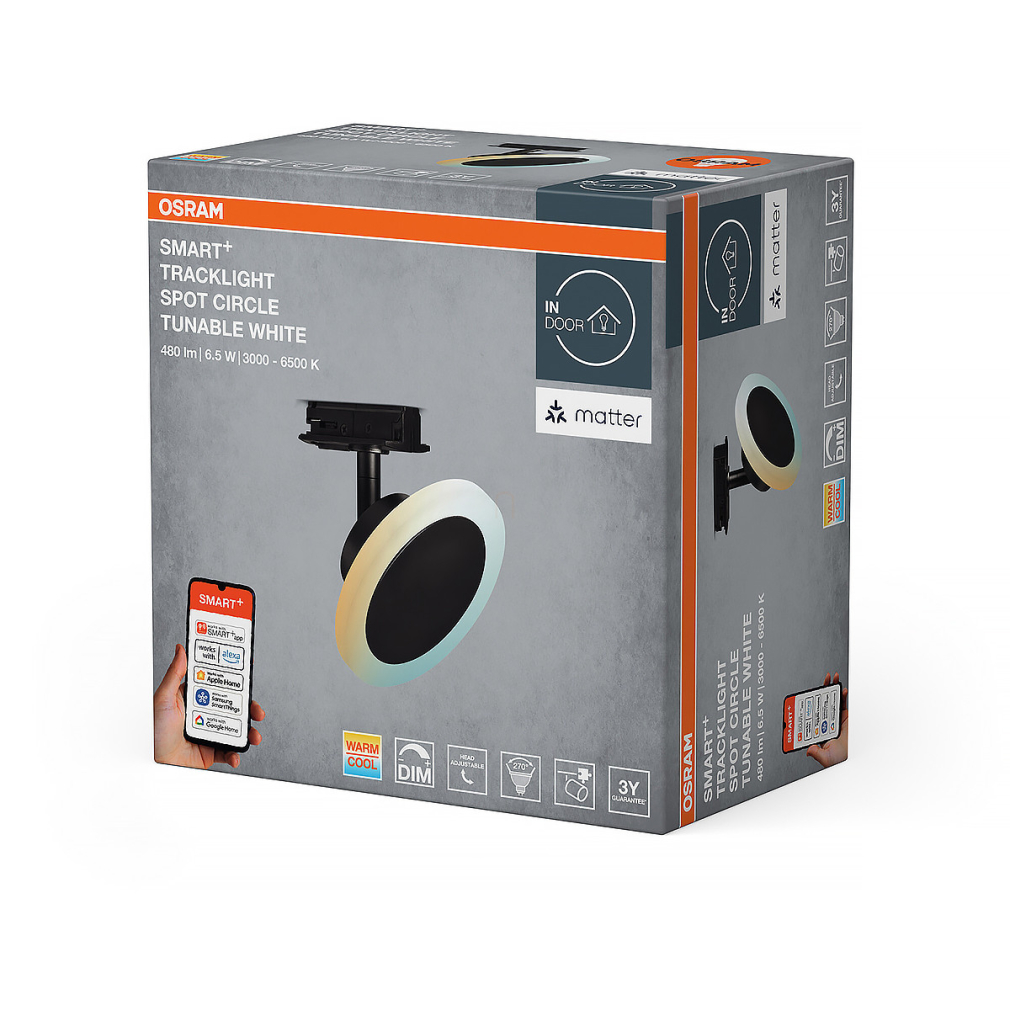Osram Smart + Matter Tracklight Circle szabályozható sínes LED spot lámpa, 6.50 W, 350 lm, 3000-6500 K, változtatható fényerősség és színhőmérséklet