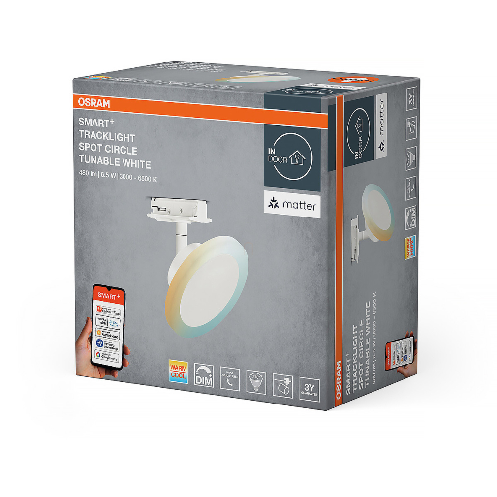Osram Smart + Matter Tracklight Circle szabályozható sínes LED spot lámpa, 6.50 W, 450 lm, 3000-6500 K, változtatható fényerősség és színhőmérséklet