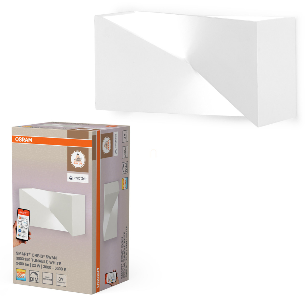 Osram Smart + Matter Wall Swan szabályozható fali LED lámpa indirekt fénnyel, fehér, 30x15 cm