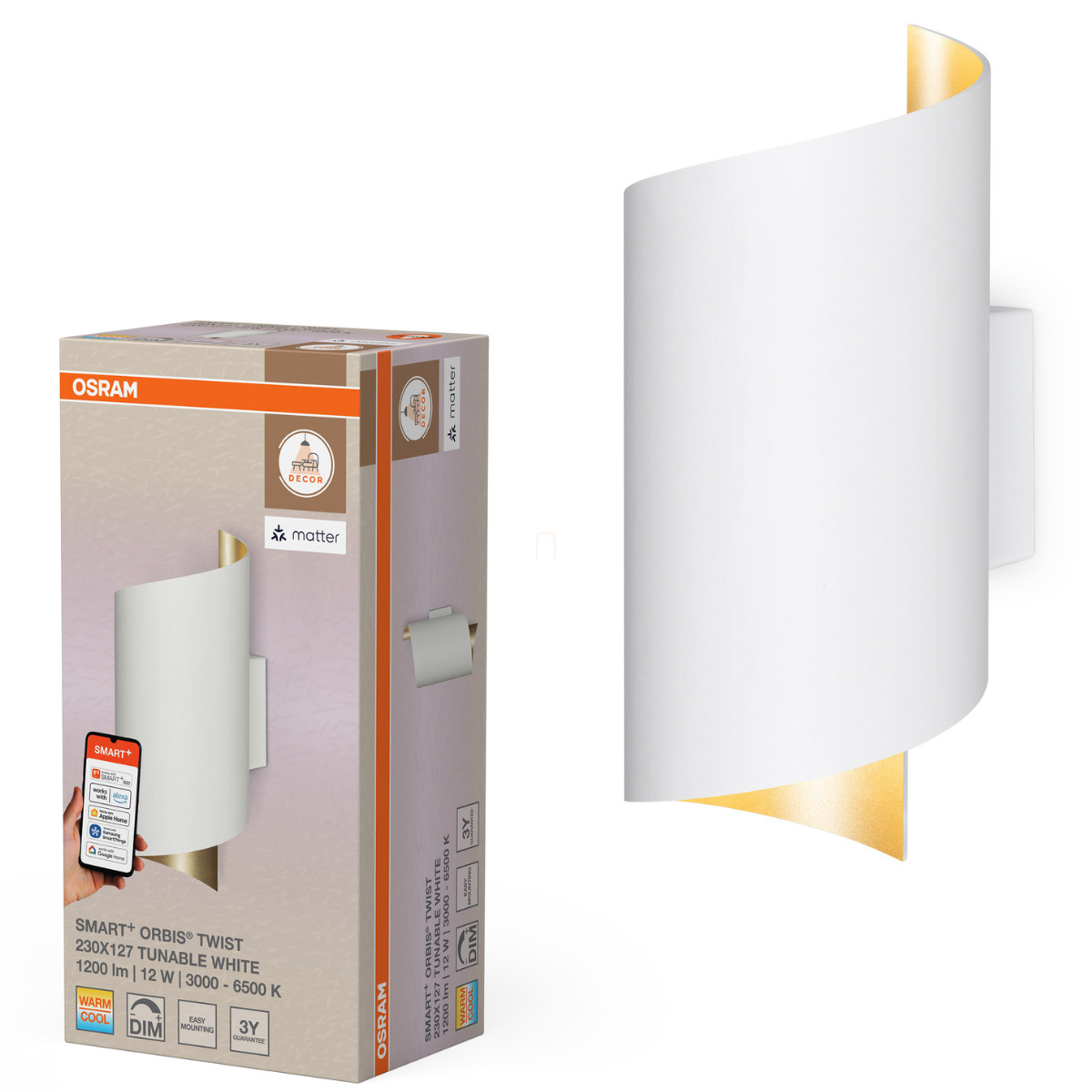 Osram Smart + Matter Wall Twist szabályozható fali LED lámpa indirekt fénnyel, spirál, fehér