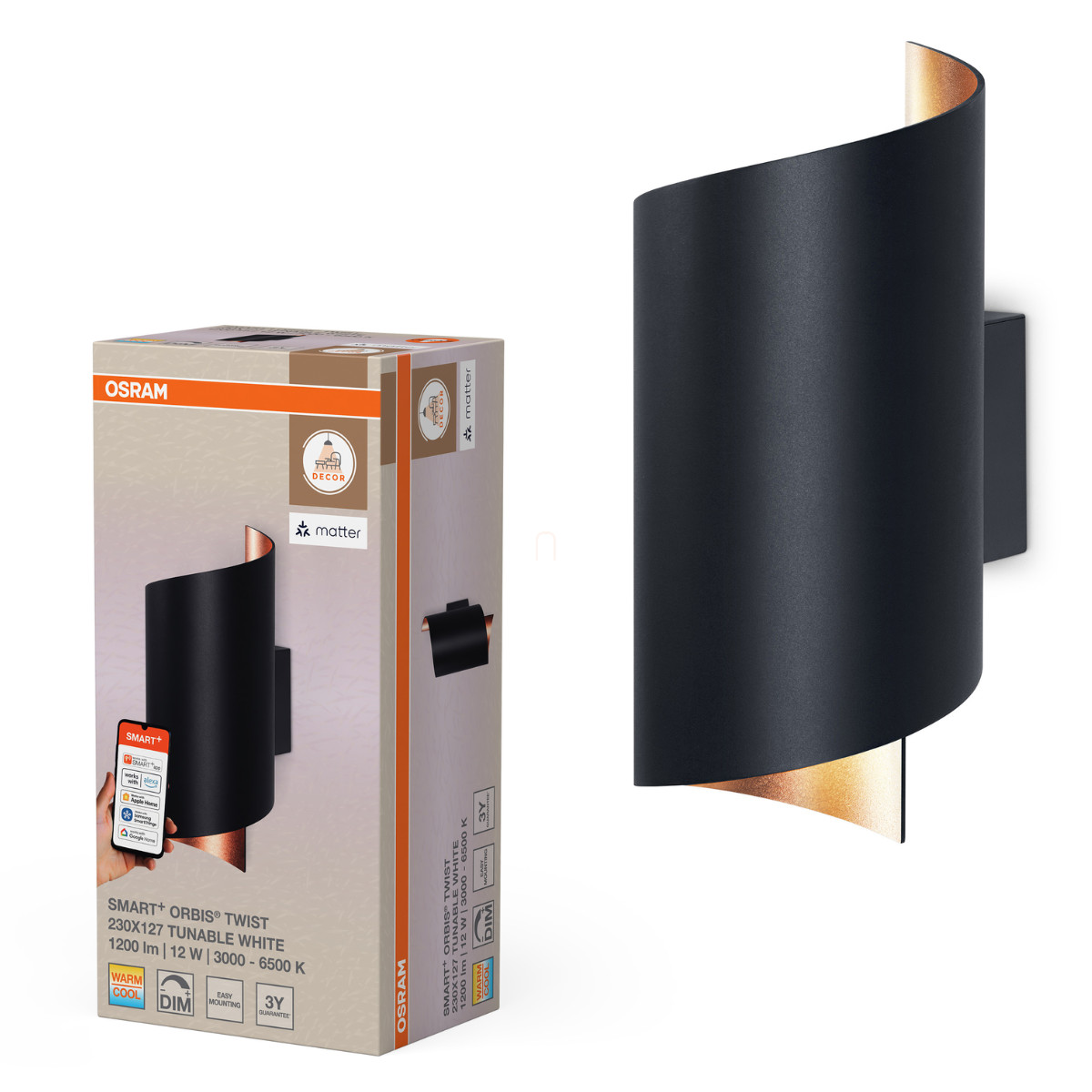 Osram Smart + Matter Wall Twist szabályozható fali LED lámpa indirekt fénnyel, spirál, fekete