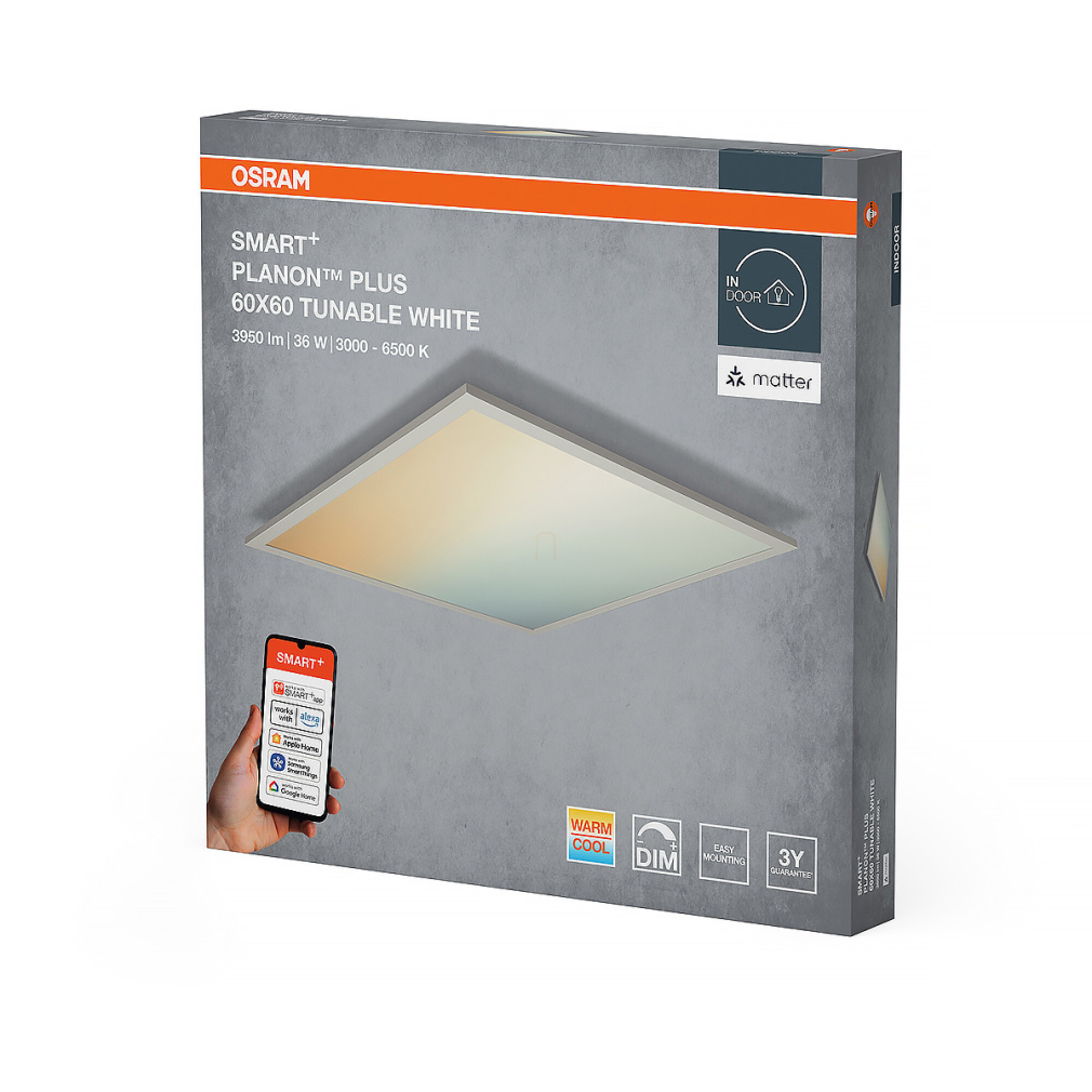 Osram Smart+ Matter Planon Plus szabályozható mennyezeti LED panel, 60x60 cm, 36 W, 3000 lm, 3000-6500 K, dimmelhető