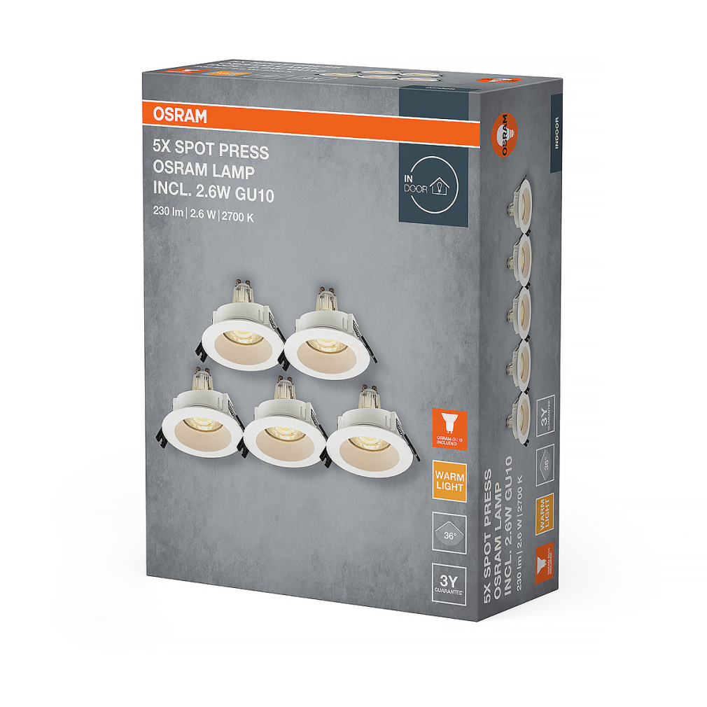 Osram Spot Set Recess süllyesztett spot lámpa GU10 LED fényforrással, fehér - 5 darabos