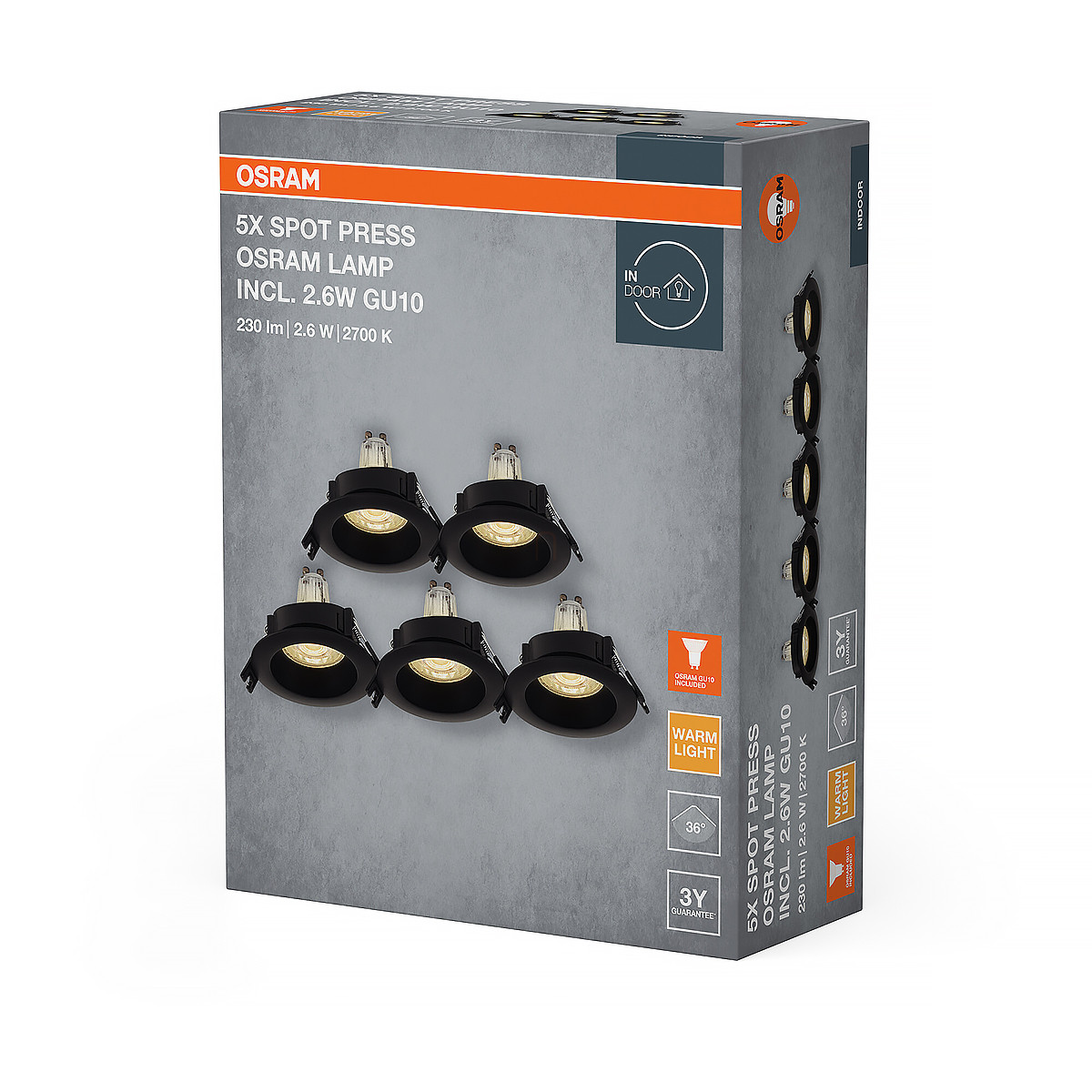 Osram Spot Set Recess süllyesztett spot lámpa GU10 LED fényforrással, fekete - 5 darabos