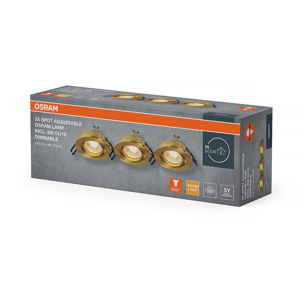 Osram Spot Set Recess süllyesztett spot lámpa szabályozható GU10 LED fényforrással, billenthető arany - 3 darabos