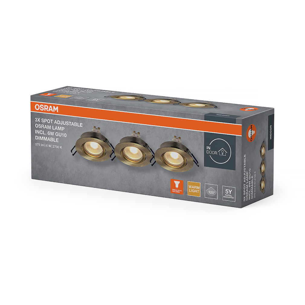 Osram Spot Set Recess süllyesztett spot lámpa szabályozható GU10 LED fényforrással, billenthető, zöld réz - 3 darabos