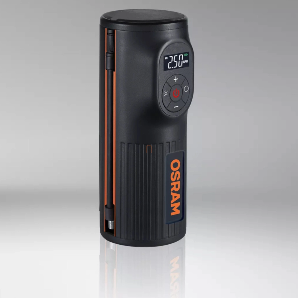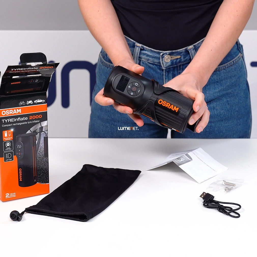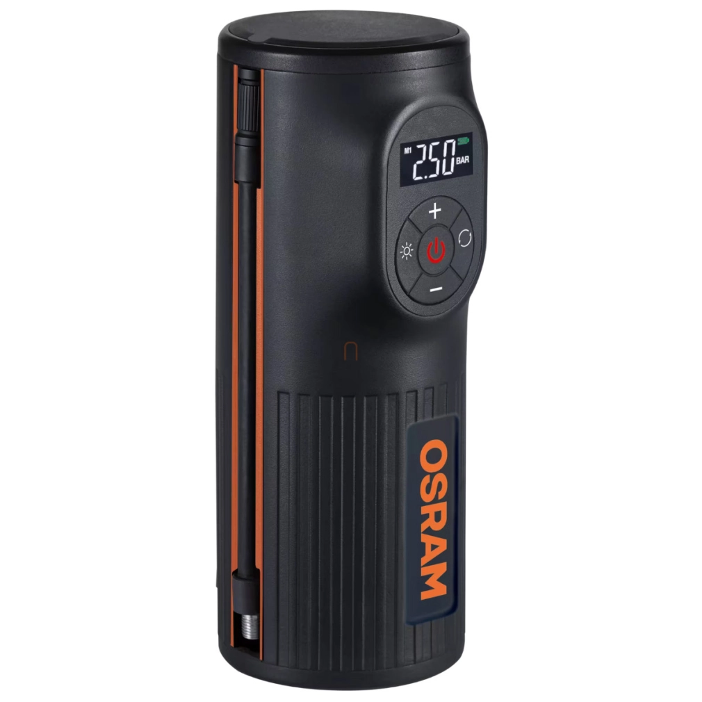 Beépített, 5200 mAh-ás akkumulátora akár power bankként is üzemelhet, azaz különféle eszközök, így telefonod vagy táblagéped töltésére is használható. Emellett zseblámpával is felszerelték. A dobozban a készülék mellett egy tárolótáskát és egy kétrészes adapterkészletet is találsz. Az adapterekkel a gumiabroncsok mellett akár labdát vagy bármilyen szingó (presta) szelepes eszközt is felfújhatsz. A termék kiválóságát jelzi, hogy az Osram 2 év garanciát vállal rá.
