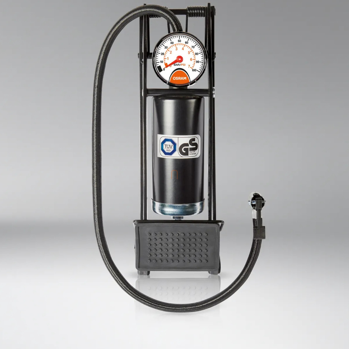 Az Osram Tyreinflate 10 Essential lábpumpa egy egyszerű, mégis megbízható megoldás mindazok számára, akik gyorsan és hatékonyan szeretnék felfújni autó-, motor- vagy kerékpárabroncsaikat, valamint sporteszközeiket vagy szabadidős felfújható tárgyaikat. Ez a klasszikus kivitelű, manuális működtetésű pumpa tökéletes választás, ha nem szeretnél külső áramforrástól függeni, hiszen bármikor, bárhol használható. A tartós, acélból készült henger garantálja a hosszú élettartamot, míg a csúszásmentes gumírozott talppárna biztonságos és stabil használatot biztosít minden felületen. Az Osram által fejlesztett kompakt és könnyen hordozható kialakításnak köszönhetően a pumpa kis helyen is elfér, így ideális társ lehet utazásokhoz, kirándulásokhoz vagy otthoni tároláshoz. A 60 cm hosszúságú megerősített levegőtömlő és az univerzális szelepcsatlakozók révén a pumpa számos különféle alkalmazási területen megállja a helyét, legyen szó autógumikról, kerékpárokról, labdákról vagy akár felfújható ágyakról. A precíz analóg nyomásmérő jól látható kijelzője lehetővé teszi a pontos nyomásértékek egyszerű és gyors ellenőrzését PSI és bar mértékegységekben. Az eszköz maximális nyomása 7 bar, így még a nagyobb nyomásigényt támasztó abroncsokkal is gond nélkül megbirkózik. A pumpa ±0,1 bar pontosságú nyomásmérést biztosít, ami különösen fontos, ha a megfelelő nyomás fenntartása révén szeretnéd meghosszabbítani az abroncsok élettartamát, javítani a menetkomfortot és csökkenteni az üzemanyag-fogyasztást. A mellékelt adapterkészlet lehetővé teszi, hogy a pumpát sportfelszerelésekhez és szabadidős eszközökhöz is egyszerűen alkalmazd, így egyetlen eszközzel számos mindennapi kihívást megoldhatsz. Mivel az Osram Tyreinflate 10 Essential nem igényel elektromos áramot, ideális vészhelyzeti megoldás is lehet, amikor hirtelen szükség van a gumik nyomásának ellenőrzésére vagy pótlására. Az Osram megbízhatóságot és tartósságot képviselő márkaneve mögött egy olyan termék áll, amely egyszerűsége ellenére magas minőségi követelményeknek felel meg, és még a szigorú német TÜV szabványoknak is megfelel. Ha egy egyszerű, de robusztus, sokoldalúan használható, könnyen kezelhető és megbízható lábpumpát keresel, az Osram Tyreinflate 10 Essential kiváló választás lehet számodra. Ideális olyan felhasználóknak, akik szeretnék kézben tartani a dolgokat, és előnyben részesítik a manuális, karbantartásmentes megoldásokat – legyen szó hobbiról, sportolásról vagy csak az autó napi karbantartásáról. Ez a pumpa bárhol használható, nem kell hozzá sem hálózati feszültség, sem akkumulátor, így soha nem kell azon aggódnod, hogy lemerül, vagy nincs a közelben konnektor. Kompakt méretének, strapabíró anyagának és univerzális alkalmazhatóságának köszönhetően hosszú távon is hű társad lehet, amikor a megfelelő nyomás elérése vagy fenntartása a cél.