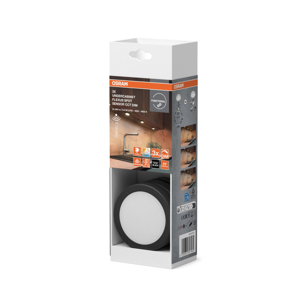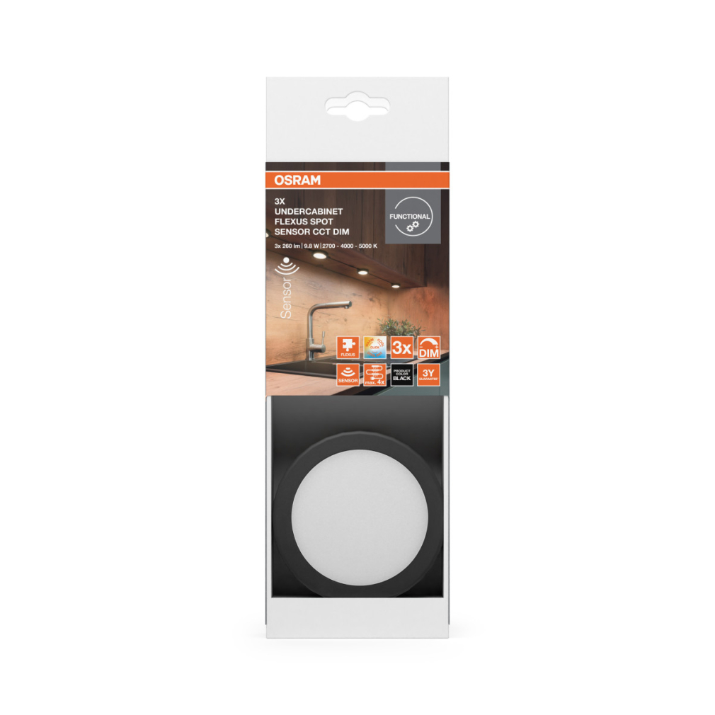 Osram Undercabinet Flexus Spot szabályozható pultvilágító LED lámpa, 9.80 W, 580 lm, 2700-4000-5000 K, változtatható fényerősség és színhőmérséklet, fekete