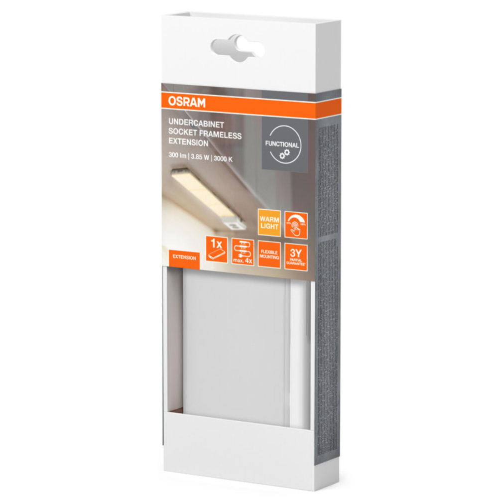 Pultvilágító LED lámpa, 17,9 cm, fehér - Osram Undercabinet Socket Frameless Extension, 3000 K, 250 lm, 3,85 W, 1.5 máteres kábellel, 36 V