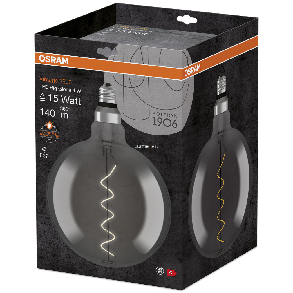 Osram Vintage Big Globe E27 4W 140lm 1800K, smoke - 16W izzó helyett