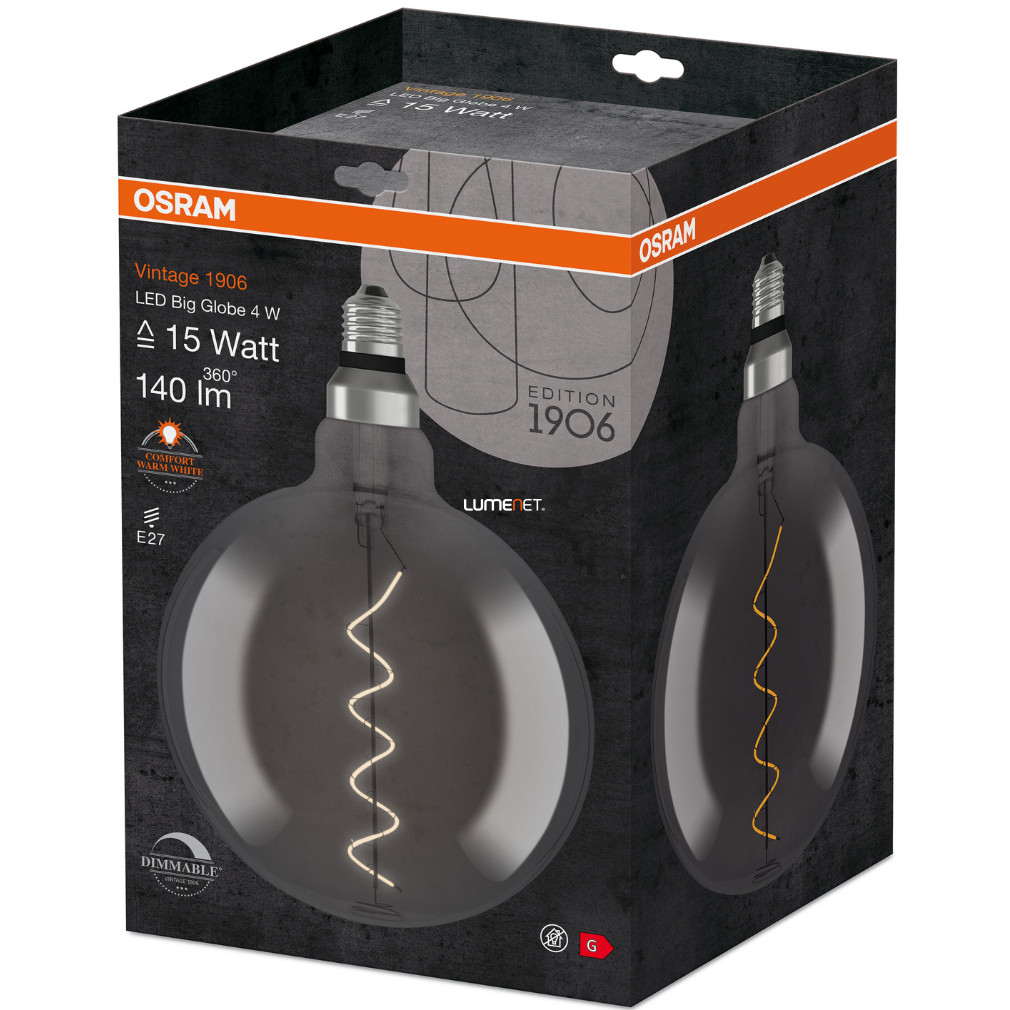 Osram Vintage Big Globe E27 4W 140lm 1800K szabályozható, smoke - 16W izzó helyett