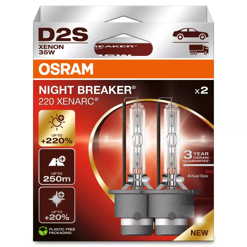 Osram Xenarc Night Breaker 220 D2S xenon fényszórólámpa, akár 220% fényerő, 3200 lumen, 4500 K, 250 méteres fénycsóva, P32d-2 foglalat, 66240XN2-2HB