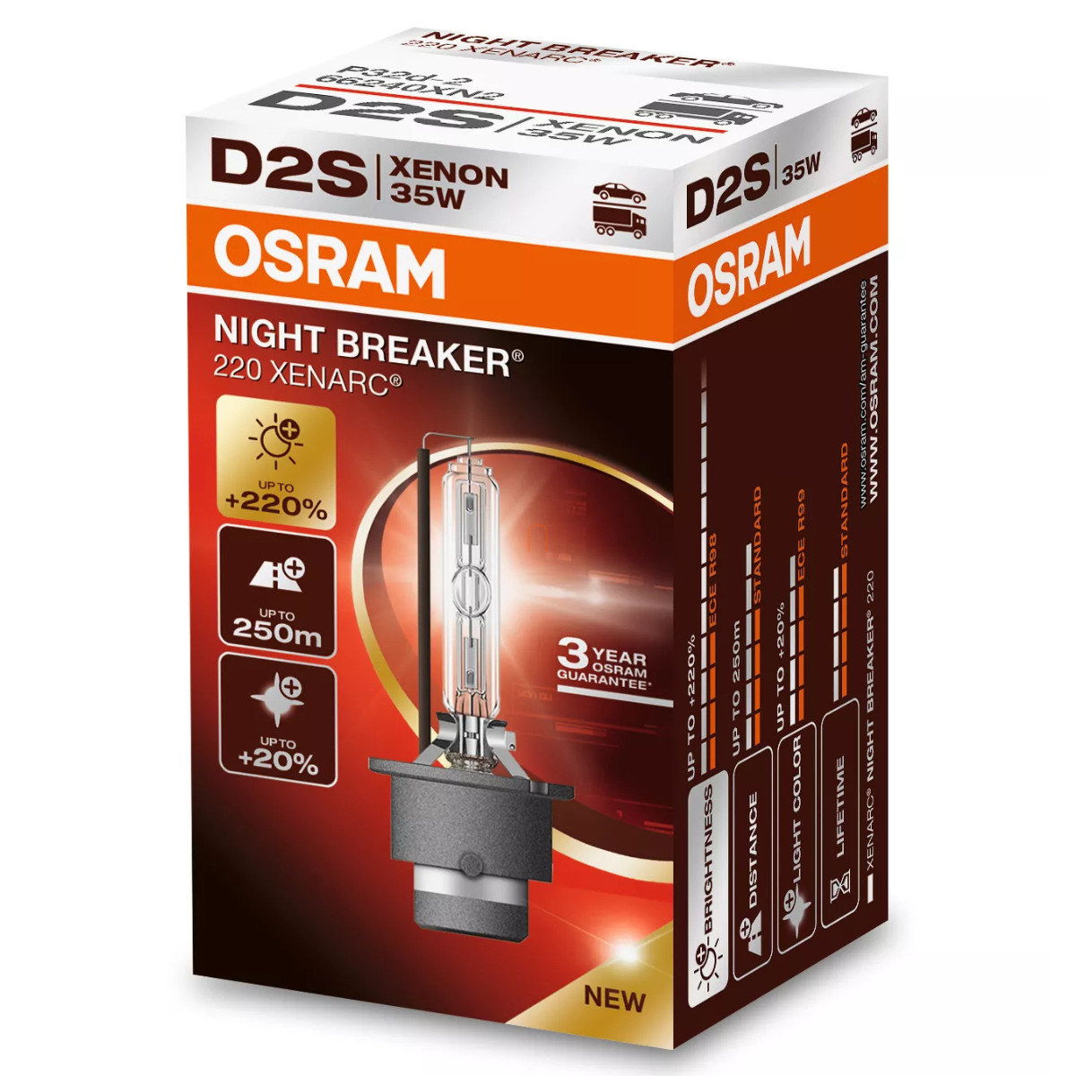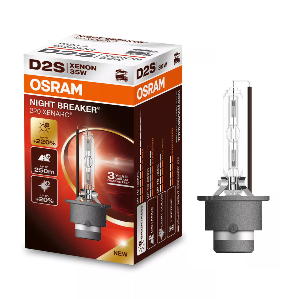 Osram Xenarc Night Breaker 220 D2S xenon fényszórólámpa, 4500 K, akár 220% fényerő, 250 méteres fénykéve, P32d-2 foglalat, 66240XN2