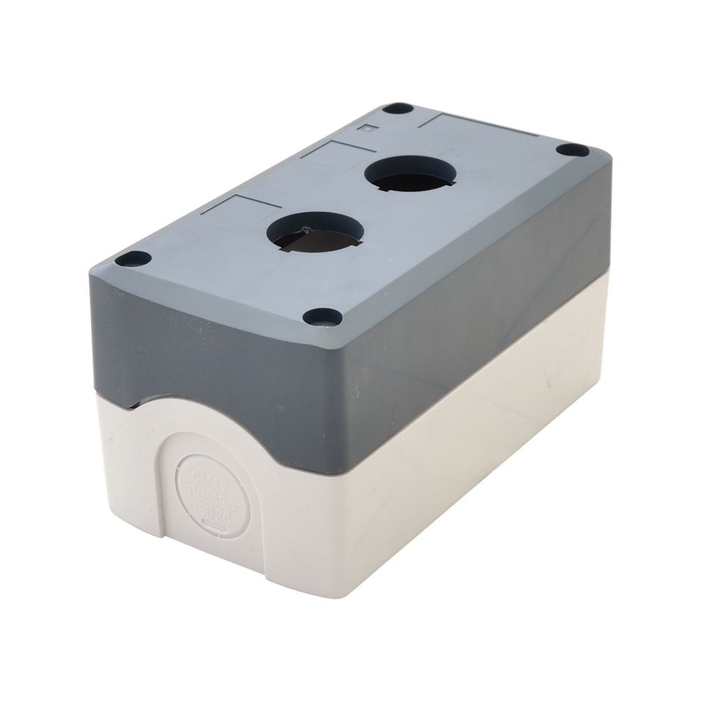Tracon összeállított tokozat nyomógombokhoz, szürke, 2-es 22,5mm IP65, 2×PG-13,5 NYGD-2GR